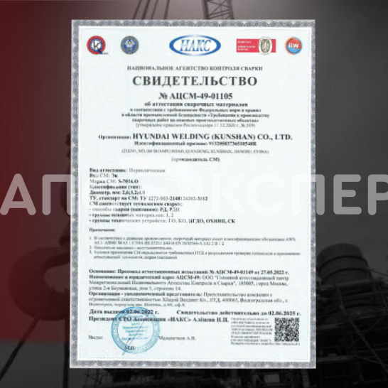 - Сертификация: НАКС